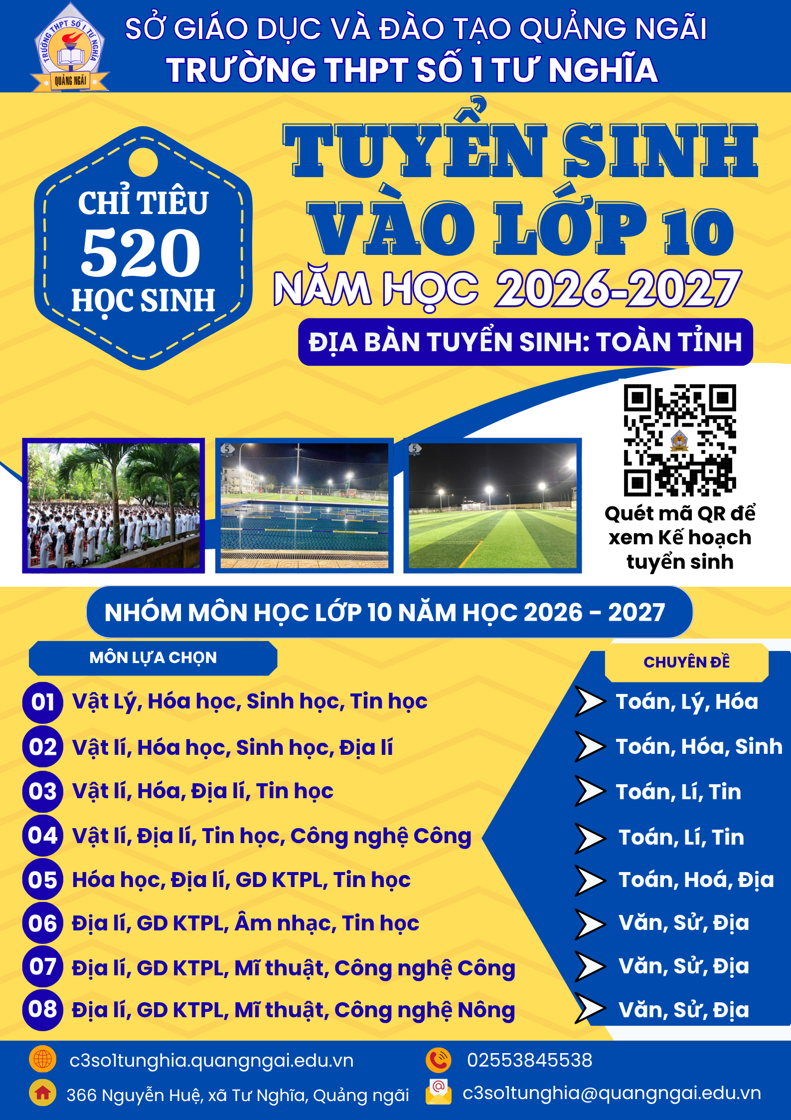 KẾ HOẠCH TUYỂN SINH VÀO LỚP 10, NĂM HỌC 2026-2027 TRƯỜNG THPT SỐ 1 TƯ NGHĨA